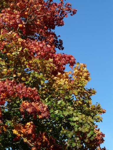Keywords: autumn tree leaves coloring colorful red green yellow blue sky sunny day maple autumn fall color fall foliage emerge farbenpracht tree acer color game gorgeous acer platanoides needle leaf maple deciduous tree norway maple