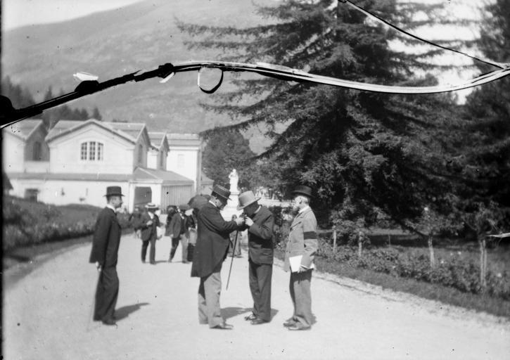 | Keywords: bibliothèque de toulouse bibliothèquedetoulouse men men gathering mengathering family masculine costumes masculinecostumes hats cane house walkway blackandwhite monochrome black and white Fonds Trutat - Photographie ancienne Cote : TRU C 313 Localisation : Fonds ancien Original non communicable Titre : Aux Quinconces, cousin G., Belloc, Gourdon, Paul, Luchon, septembre 1897 Auteur : Trutat, Eugène Rôle de l’auteur : Photographe Lieu de création : Bagnères-de-Luchon (Haute-Garonne) Date de création : : 1897 Mesures : 5 x 6 cm Observations : Plaque cassée Mot(s)-clé(s) : -- Parc -- Arbre -- Maison -- Eté -- Sapin -- Montagne -- Allée -- Buisson -- Homme -- Costume masculin -- Automne -- Belloc, Emile -- Gourdon, Maurice -- Trutat, Paul -- Bagnères-de-Luchon (Haute-Garonne) -- Bagnères-de-Luchon (Haute-Garonne ; canton) -- Midi-Pyrénées (France) -- Pyrénées (France) -- Parc des Quinconces (Bagnères-de-Luchon) -- 19e siècle, 4e quart Médium : Photographies -- Négatifs sur plaque de verre -- Noir et blanc -- Scènes de rue Bibliographie : Frappé (Jean-Bernard). - Autrefois Bagnères de Luchon. Tome I. - Anglet : Atlantica, 2001. - 345 p. ; 15 x 22 cm. - (Autrefois) cf. p. 140-141. Bibliothèque de Toulouse. Domaine public Fonds Trutat - Photographie ancienne Cote : TRU C 313 Localisation : Fonds ancien Original non communicable Titre : Aux Quinconces, cousin G., Belloc, Gourdon, Paul, Luchon, septembre 1897 Auteur : Trutat, Eugène Rôle de l’auteur : Photographe Lieu de création : Bagnères-de-Luchon (Haute-Garonne) Date de création : : 1897 Mesures : 5 x 6 cm Observations : Plaque cassée Mot(s)-clé(s) : -- Parc -- Arbre -- Maison -- Eté -- Sapin -- Montagne -- Allée -- Buisson -- Homme -- Costume masculin -- Automne -- Belloc, Emile -- Gourdon, Maurice -- Trutat, Paul -- Bagnères-de-Luchon (Haute-Garonne) -- Bagnères-de-Luchon (Haute-Garonne ; canton) -- Midi-Pyrénées (France) -- Pyrénées (France) -- Parc des Quinconces (Bagnères-de-Luchon) -- 19e siècle, 4e quart Médium : Photographies -- Négatifs sur plaque de verre -- Noir et blanc -- Scènes de rue Bibliographie : Frappé (Jean-Bernard). - Autrefois Bagnères de Luchon. Tome I. - Anglet : Atlantica, 2001. - 345 p. ; 15 x 22 cm. - (Autrefois) cf. p. 140-141. Bibliothèque de Toulouse. Domaine public |