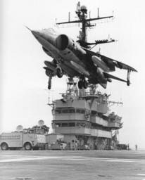 | Keywords: AV-8A of VMA-513 hovering over USS Guam (LPH-9) 1972.jpg A U S Marine Corps Hawker Siddeley AV-8A Harrier hovering over the flight deck of the amphibious assault ship USS Guam LPH-9 during interim sea control ship tests in the Atlantic Ocean in January 1972 The Guam was the test bed for the first operational exercise of the SCS concept with HS-15 SH-3 Sea King and VMA-513 AV-8A Harrier aircraft HS-15 the first SCS Sea Control Ship helicopter squadron had formed at NAS Lakehurst in October 1971 At-sea tests commenced in January of 1972 The operations were significant in near term concept development of small carrier applications in limited combat environments and in future changes in U S Navy force structure related to ASW/Sea Control employment and operation of helicopters notably the coming Sikorsky H-60 Seahawk series Object Notes http //collections naval aviation museum/emuwebdoncoms/pages/doncoms/AdvQuery php U S Navy National Museum of Naval Aviation photo No http //collections naval aviation museum/emuwebdoncoms/pages/doncoms/Display php irn 13957 QueryPage 2Femuwebdoncoms 2Fpages 2Fdoncoms 2FAdvQuery php 1996 253 7125 002 1972-01 U S Navy PD-USGov-Military-Navy USS Guam LPH-9 AV-8A/C Harrier US Marine Corps Marine Attack Squadron 513 |