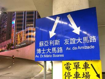 Keywords: AvenidasDoutorMarioSoaresEdaAmizade.jpg pt Avenida Doutor Mário Soares e Avenida da Amizade zh-hant 蘇亞利斯博士大馬路與友誼大馬路 own 2009-11-25 18 34 40 User Cdip150 Road signs in Macau