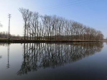 Keywords: avenue trees water mirroring landscape rest reflection