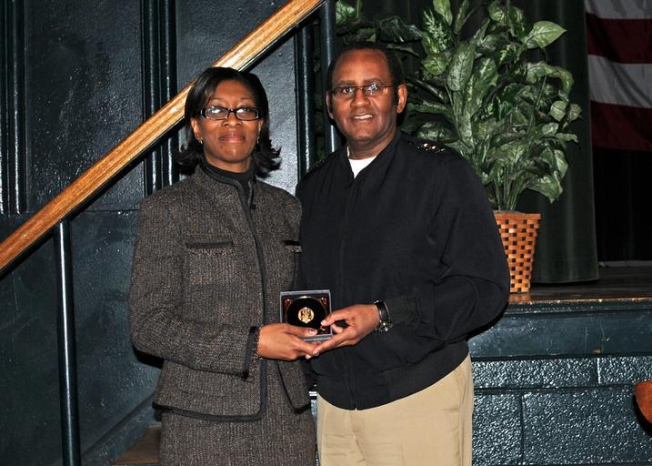 | Keywords: Award presented 090217-N-DM168-006.jpg en U S Navy Vice Adm Mel Williams Jr right commander of the U S 2nd Fleet presents Wanda Barnard-Bailey the deputy city manager for Human Development and Community Initiatives of Chesapeake Va a U S 2nd Fleet challenge coin during a Black History Month celebration at Naval Station Norfolk Va Feb 17 2009 U S Navy photo by Mass Communication Specialist 3rd Class Tyler J Wilson/Released 2009-02-17 Petty Officer 3rd Class Tyler Wilson https //www dvidshub net/image/1563247 090217-N-DM168-006 2014-09-23 18 00 NAVAL STATION NORFOLK VA US PD-USGov-Military-Navy Naval Station Norfolk Black History Month Images from DoD uploaded by Fæ |