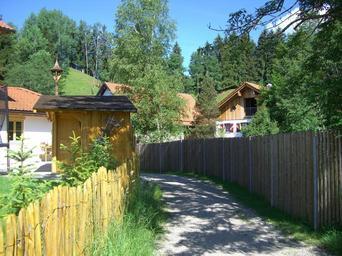 Keywords: away garden fence hut wood fence limit trees hill sky blue