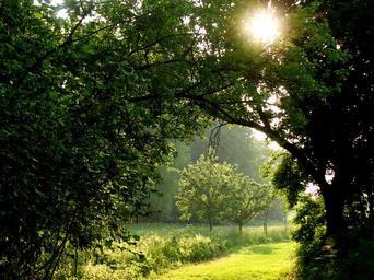 Keywords: away green sun romantic nature trail forest meadow forest path nature