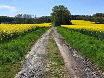 Keywords: away oilseed rape yellow nature landscape field rare plant spring sky lane