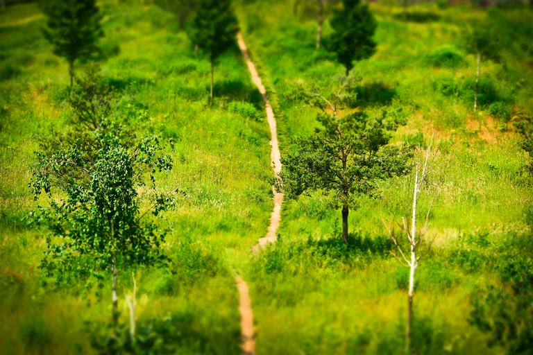 Keywords: away trees landscape park nature mood hill forest path tilt shift