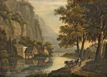 Keywords: Axel Otto Mörner - Bergigt flodlandskap med byggnader.jpg oil canvas cm 26 36 bukowskis se Public domain Axel Otto Mörner 1774-1852 Swedish painter PD-art Paintings in Sweden Mörner family