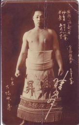 | Keywords: Ayanobori Scan10009.JPG Bromide from Ayanobori Takezo Sumo wrestler 綾昇竹蔵のミニブロマイド 投稿 物およびスキャン編集 2013-12-02 16 37 42 own collection unknown<br>Scanning and editing was done by Ogiyoshisan Last edited December 2 2013 Custom license marker 2013 12 03 PD-Japan-oldphoto Uploaded with UploadWizard Black and white photographic portraits of sumo wrestlers Ayanobori Takezō |