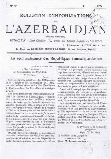 | Keywords: Azərbaycanın Parisdə fransız dilində nəşr edilən ilk məlumat bülleteni.JPG az Azərbaycanın Parisdə fransız dilində nəşr edilən ilk məlumat bülleteni 1920 Ramiz Abutalıbov http //www mfa gov az/files/file/Diplomatiya_Alemi_3 pdf FRANSADA İLK AZƏRBAYCAN DİPLOMATİK N MAYƏNDƏLİYİNİN İNFORMASİYA VƏ NƏSR SAHƏSİNDƏKİ FƏALİYYƏTİ Diplomatiya aləmi jurnalı 2003 3 səh 75 Ramiz Abutalıbovun şəxsi arxivindən Government of Azerbaijan Democratic Republic other versions File Инфо мационный бюллетень «Азе байджан» выпущенный азе байджанской делегацией в Па иже Октяб ь 1919 г jpg Custom license marker 2015 01 25 PD-old Uploaded with UploadWizard Azerbaijan Democratic Republic |