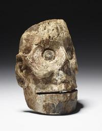 | Keywords: Aztec - Mask - Walters 2009201 - Three Quarter Right.jpg Throughout Mesoamerica the wearing of masks was central to the performance of religious rituals and reenactments of myths and history The face is the center of identity and by changing one's face a person can transcend the bounds of self social expectations and even earthly limitations In this transformed state the human becomes the god supernatural being or mythic hero portrayed Masks of skeletal heads whether human or animal are relatively common for death played a central role in Mexica religion Death was one of the twenty daysigns of the Mexican calendar indicating its essential place in the natural cycle of the cosmos Death also was directly connected to the concept of regeneration and resurrection which was a basic principle in Aztec religious philosophy A key Mexica myth recounts the journey of Ehecatl a wind god who was an aspect of Quetzalcóatl Feathered Serpent a powerful Mesoamerican deity Ehecatl travels to Mictlán the land of the dead where he retrieves the bones of long-dead ancestors He grinds their bones and mixes the powder with his blood offered in sacrifice With this potent mixture the god formed the new race of humans who according to Mexica cosmology inhabit the present fifth age of Creation Thus death and rebirth are intimately connected in Aztec thought and religious practice The mask represents the concept of life generated from death with visages animated by lively eyes and painted skin The mask was probably worn during rituals covering the performer's face or attached to an elaborate full-head mask and transforms the person into a new being that symbolizes the pan-Mesoamerican belief in life springing from death as a natural and inevitable process of the mystical universe between 1400 1521 Late Postclassic wood white ground with traces of black and red paint cm 17 2 14 7 2 accession number 2009 20 1 80156 Throckmorton Fine Arts New York date and mode of acquisition unknown John G Bourne 1990s by purchase Walters Art Museum Gift of John Bourne 2009 place of origin Central Mexico Walters Art Museum license Aztec art in the Walters Art Museum Aztec masks Media contributed by the Walters Art Museum needs category review Mictlán Mesoamerican wood artefacts |