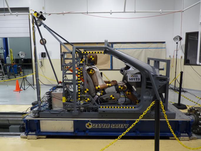 Keywords: B11127P029.jpg en A reverse-firing sled with a buck representing a conventional sedan prior to a run 2013-04-18 11 23 27 http //www-nrd nhtsa dot gov/database/VSR/SearchMedia aspx database b tstno 11127 mediatype p p_tstno 11127 University of Virginia National Highway Traffic Safety Administration other versions PD-USGov Crash test dummies |