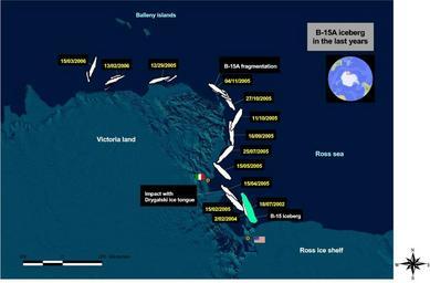 | Keywords: B15a a4.jpg Found on Wikipedia en GIS image showing the position of B-15A iceberg from 2003 to March 2006 Image made by Luca Pietranera Information on the iceberg poositions derived by NASA-MODIS images http //rapidfire sci gsfc nasa gov/ MODIS Rapid Response Rroject at NASA/GSI and European Space Agency ESA http //earth esa int/ew/special_events/iceberg-b15_antartic/sp_iceberg-b15 htm ENVISAT MERIS and ASAR sensors images The background is a part of the MODIS mosaic of Antarctica http //nsidc org/data/moa/index html Haran T J Bohlander T Scambos and M Fahnestock compilers 2005 MODIS mosaic of Antarctica MOA image map Boulder CO USA National Snow and Ice Data Center Digital media Italian station Mario Zucchelli and US McMurdo Station are highlighted on the map 2007-01-17 own assumed TCY Maps of Antarctica B-15 McMurdo Station Iceberg B-15 Envisat Maps of icebergs |