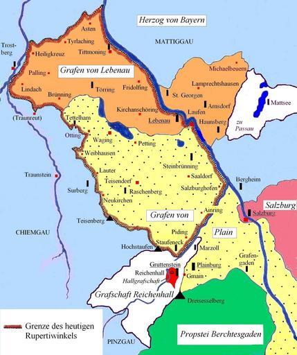 Keywords: B1 Salzburggau Herrschaftsbereiche im Hochmittelalter.JPG de Herrschaftsgebiete im nördlichen Salzburggau im Hochmittelalter um 1200 etwa 1104 bis 1229 <br/> Die Karte wurde erstellt für den heimatkundlichen Beitrag -- Von Salzburg žretour nach Baiern - der Rupertiwinkel fiel vor 200 Jahren an das bayerische Königreich zurück -- der in žHeimatblätter Beilage von Reichenhaller Tagblatt und Freilassinger Anzeiger am 25 09 2010 veröffentlicht wurde Andreas Hirsch Bad Reichenhall - uploader Furchenstein Andreas Hirsch Bad Reichenhall 2010 PermissionOTRS 2012030810009403 Kartographische Grundlagen Karte žBurgen und Herrschaftsgebiete um 1200 in Johannes Lang Burgen und Adel in Heimat mit Geschichte und Zukunft Hg EuRegio Salzburg-Berchtesgadener Land-Traunstein 2004 Seite 33 Karte žHerrschaftsgliederung im Reichenhaller Raum um 1130 in Johannes Lang Geschichte von Bad Reichenhall Neustadt/Aisch 2009 Seite 129 Karte žTerritoriumsbildung des Erzstifts Salzburg in Heinz Dopsch Die Entstehung des Territoriums in Dopsch/Spatzenegger Geschichte Salzburgs Band I/1 Salzburg 1999 Seite 344 Literarische Grundlagen Heinz Dopsch Kleine Geschichte Salzburgs Salzburg 2001 Dopsch/Spatzenegger Geschichte Salzburgs Band I/1 Salzburg 1999 EuRegio Salzburg-Berchtesgadener Land- Traunstein Heimat mit Geschichte und Zukunft 2004 Johannes Lang Geschichte von Bad Reichenhall Neustadt/Aisch 2009 Helga Reindel-Schedl Laufen an der Salzach Die alt-salzburgischen Pfleggerichte Laufen Staufeneck Teisendorf Tittmoning und Waging Historischer Atlas von Bayern Altbayern H 55 1989 Rainer Wilflinger Grenzverlauf und Grenzsituation zwischen dem Erzstift Salzburg und Bayern im Bereich des nördlichen Rupertiwinkels in Das Salzfass Historischer Verein Rupertiwinkel 2002/Heft 2 Rupertiwinkel Maps of the history of Salzburg Cc-zero |