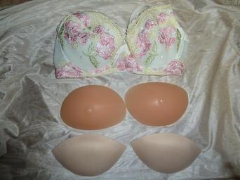 Keywords: B75 bra with bra pad.JPG B75サイズの3/4カップのブラジャーと ブラパッド2種(上がシリコン製 下がウレタン製) 43 476358 144 467125 Cc-zero Brassieres Taken with Panasonic Lumix DMC-TZ10