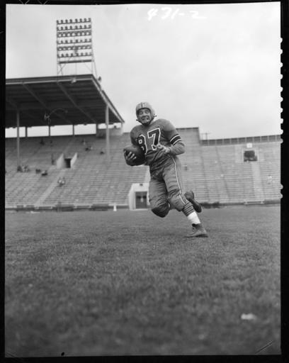 Keywords: blackandwhite monochrome outdoor photo border black and white B.C. Lions football club, Pete Thodas, Number 87 VPL Accession Number: 84780 Date: July 10, 1954 Photographer/Studio: Jones, Art Content: Part of a series 84780+ (63 photos) Topic: Sports Sports teams Football players Costume Sports uniforms Person: Thodas, Pete (B.C. Lions Football club) Organization: B.C. Lions Football Club Location: British Columbia - Vancouver More information on our historical photograph collection: www.vpl.ca/historicalphotos B.C. Lions football club, Pete Thodas, Number 87 VPL Accession Number: 84780 Date: July 10, 1954 Photographer/Studio: Jones, Art Content: Part of a series 84780+ (63 photos) Topic: Sports Sports teams Football players Costume Sports uniforms Person: Thodas, Pete (B.C. Lions Football club) Organization: B.C. Lions Football Club Location: British Columbia - Vancouver More information on our historical photograph collection: www.vpl.ca/historicalphotos |