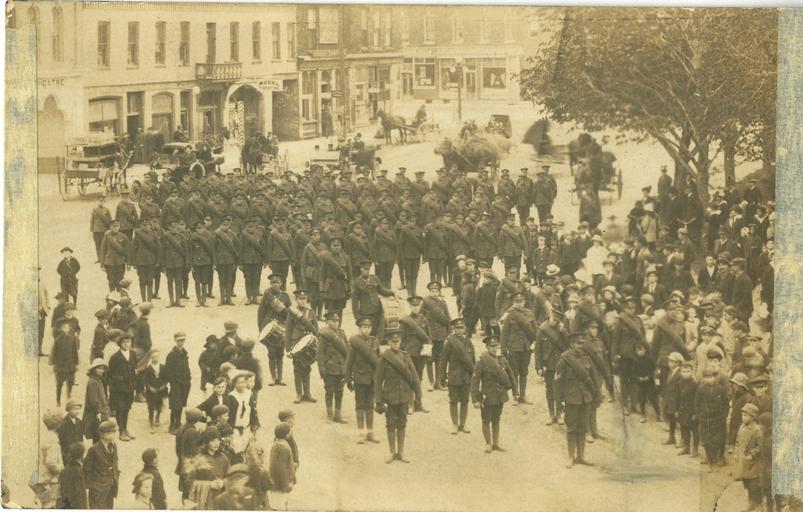 | Keywords: outdoor monochrome Description: Black and white photo postcard featuring a large group of men in World War I uniforms standing in the Square in Goderich, Ontario. The Model Theatre is in the background. The photograph is of B (Goderich) Company. Date: 1916 Object ID : 2007.0062.129 Order a higher-quality version of this item by contacting the Huron County Museum (fee applies). Description: Black and white photo postcard featuring a large group of men in World War I uniforms standing in the Square in Goderich, Ontario. The Model Theatre is in the background. The photograph is of B (Goderich) Company. Date: 1916 Object ID : 2007.0062.129 Order a higher-quality version of this item by contacting the Huron County Museum (fee applies). |