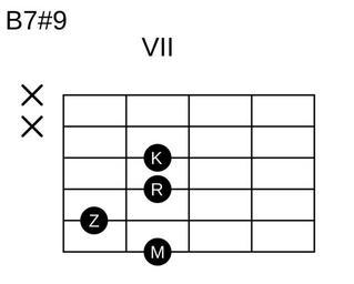 Keywords: B-Dur-7-x9.svg Eigenanfertigung 2006-02-11 own assumed Red Rooster Guitar chords in standard tuning