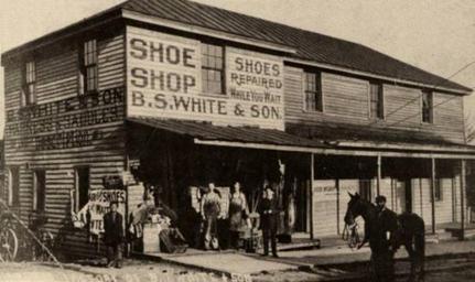 | Keywords: B S White and Son Chatham.jpg en The store of Benjamin Stuart White Son a structure in downtown Chatham Virginia pictured about 1912 The establishment combined a shoe shop and harness and saddle business The building once housed a saloon prior to the occupancy by White and his son http //www victorianvilla com/sims-mitchell/local/white/bs/01/index htm Author ca 1912 Pittsylvania County Virginia PD-old | ||||