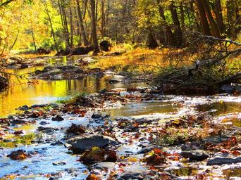 Keywords: babbling creek autumn trees brook peaceful remote serene tranquil gurgling scenic soothing stream tree autumn babbling outdoor nature relaxing creek fall water green yellow amber