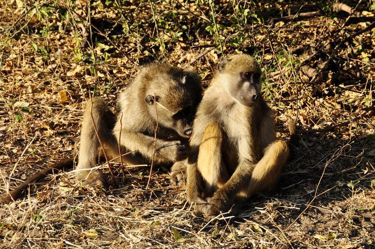 Keywords: baboon ape affection fur care sit sitting vigilant botswana africa animal wild safari brown yellow