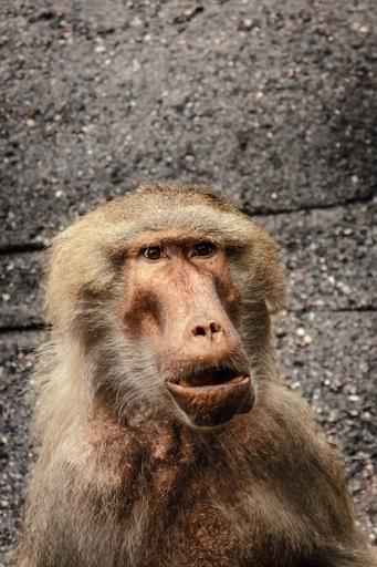 Keywords: baboon papio hamadryas monkey old world monkey primates animals monkey females zoo animal old animal female brown coat sit zoo hagenbeck hamburg portrait eat chew watch wait