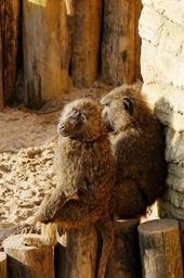 Keywords: baboon sitting log sand evening sun enclosure animal zoo