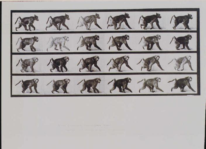 | Keywords: Baboon the walk (3589381284).jpg Eadweard Muybridge 1830-1904 Collection of National Media Museum Eadweard Muybridge 1830-1904 was the first photographer to carry out the analysis of movement by sequence photography chronophotography an important stage in the invention of cinematography by using a series of cameras These photographs of a baboon walking are Plate 784 from Muybridge's 'Animal Locomotion'; a photographic study of animal and human movement http //www flickr com/photos/nationalmediamuseum/3589381284/ 'Baboon the walk' photo Photograph by http //www flickr com/people/26808453 N03 National Media Museum from UK original Artwork by Eadweard Muybridge 1830-1904 http //www nationalmediamuseum org uk/Photography/copyright asp National Media Museum Flickr Commons ;Photography Flickr-no known copyright restrictions File Upload Bot Magnus Manske 2013-05-20 ;Artwork PD-old-auto 1894 Josve05a <span class signature-talk > 1880s 1887 Chronophotography Works by Eadweard Muybridge in the National Media Museum collection Locomotion Sequence |