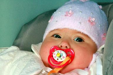Keywords: baby girl pacifier hat white innocence