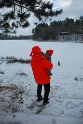 Keywords: baby infant outdoor winter snow small hunting hat kid cute baby and dad father dad child daddy family love lakeside trees winter mood