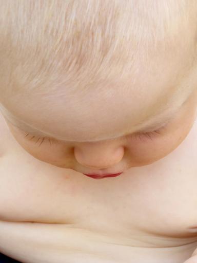 Keywords: baby small child face fluff hair growth hair view look examine blond expression skin baby fat fat
