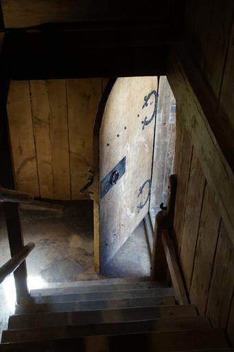 Keywords: bach ritterburg knight's castle castle lower needle middle ages wooden castle tower kanzach southern germany medieval woods building architecture reconstruction reconstructed baden württemberg germany space room gloomy mood atmosphere