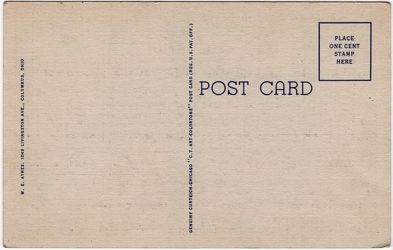 Keywords: postcard postcards unused unknown date unknowndate date unknown dateunknown columbus columbus, ohio columbusohio ohio ohio state ohiostate ohio state university ohiostateuniversity osu colleges collage universities schools aerial aerial view aerialview campus stadium ohio state stadium ohiostatestadium divided back dividedback white border whiteborder linen c.t. art colortone ctartcolortone curt teich co. curtteichco curteich w.e. ayres weayres text writing Description on front of card: Aeroplane View of Ohio State University, Columbus, Ohio Published by: W.E. Ayres, 1049 Livingston Ave., Columbus, Ohio / Genuine Curteich-Chicago "C.T. Art-Colortone" post card Unused. Publisher Note: Curt Teich emigrated to Chicago in 1895. He had worked as a lithographer in Lobenstein, Germany. He founded the Curt Teich Company in 1898, concentrating on newspaper and magazine printing. He was an early publisher of postcards, but he didn't begin printing them himself until 1908. According to MetroPostcard.com, "As his competition dwindled, his sales expanded and his American factories would eventually turn out more postcards than any other in the United States. " The company was best known for their wide range of advertising and postcards of North America. By the 1920s, it was producing so many postcards with borders that they became recognized as a type dubbed "White Border Cards," creating an "era." Curt Teich started using offset presses in 1907, but it took a number of years before he had offset presses made to his satisfaction, and many more years for him to perfect the method. His innovations in this printing technique directly led to the production of what we now call "linens" by the early 1930s. The company aided the war effort during the second world war by also printing many military maps. Curt Teich eventually turned management of the company over to his son, but he remained active in company operations throughout its history. Curt Teich died in 1974 and the family business was sold to Regensteiner Publishers who continued to print postcards at the Chicago plant until 1978 when the rights to the company name and processes were sold to the Irish company, John Hinde Ltd. Their California subsidiary now prints postcards under the name John Hinde Curteich, Inc. Source: www.metropostcard.com/publisherst.html Description on front of card: Aeroplane View of Ohio State University, Columbus, Ohio Published by: W.E. Ayres, 1049 Livingston Ave., Columbus, Ohio / Genuine Curteich-Chicago "C.T. Art-Colortone" post card Unused. Publisher Note: Curt Teich emigrated to Chicago in 1895. He had worked as a lithographer in Lobenstein, Germany. He founded the Curt Teich Company in 1898, concentrating on newspaper and magazine printing. He was an early publisher of postcards, but he didn't begin printing them himself until 1908. According to MetroPostcard.com, "As his competition dwindled, his sales expanded and his American factories would eventually turn out more postcards than any other in the United States. " The company was best known for their wide range of advertising and postcards of North America. By the 1920s, it was producing so many postcards with borders that they became recognized as a type dubbed "White Border Cards," creating an "era." Curt Teich started using offset presses in 1907, but it took a number of years before he had offset presses made to his satisfaction, and many more years for him to perfect the method. His innovations in this printing technique directly led to the production of what we now call "linens" by the early 1930s. The company aided the war effort during the second world war by also printing many military maps. Curt Teich eventually turned management of the company over to his son, but he remained active in company operations throughout its history. Curt Teich died in 1974 and the family business was sold to Regensteiner Publishers who continued to print postcards at the Chicago plant until 1978 when the rights to the company name and processes were sold to the Irish company, John Hinde Ltd. Their California subsidiary now prints postcards under the name John Hinde Curteich, Inc. Source: www.metropostcard.com/publisherst.html |