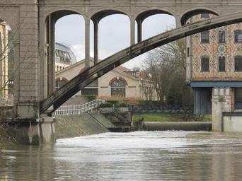 | Keywords: Back of the Meunier factory.jpg en Under the pont Hardi Fier bridge the weir used by the former chocolate factory Meunier in Noisiel Seine-et-Marne France fr Sous le pont Hardi la chute utilisée par l'ancienne chocolaterie Meunier à Noisiel Seine-et-Marne own Tangopaso 2013-01-01 48 857854 2 620035 region FR_heading E Pont Hardi Weirs in Seine-et-Marne |