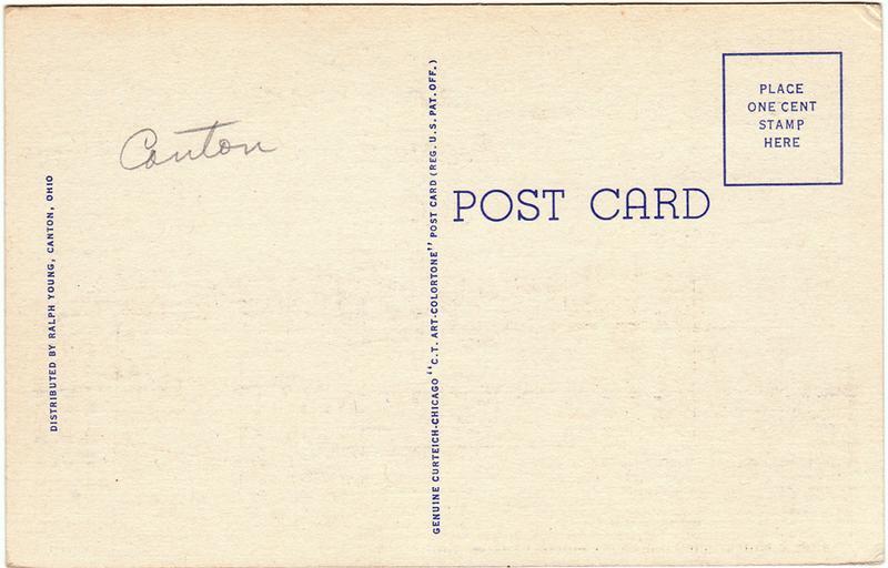 Keywords: postcard unused linen divided back dividedback ralph young ralphyoung curt teich co. curtteichco c.t. art-colortone ctartcolortone date unknown dateunknown unknown date unknowndate white border whiteborder white border era whiteborderera text writing Description on front of card: Public Square Showing Court House, Canton, Ohio Distributor: Ralph Young, Canton, Ohio | Genuine Curteich-Chicago "C.T. Art-Colortone" post card by Curt Teich Co., Chicago, Illinois Date: Unknown (Est. 1930s) Used. Publisher Note: Curt Teich emigrated to Chicago in 1895. He had worked as a lithographer in Lobenstein, Germany. He founded the Curt Teich Company in 1898, concentrating on newspaper and magazine printing. He was an early publisher of postcards, but he didn't begin printing them himself until 1908. According to MetroPostcard.com, "As his competition dwindled, his sales expanded and his American factories would eventually turn out more postcards than any other in the United States." The company was best known for their wide range of advertising and postcards of North America. By the 1920s, it was producing so many postcards with borders that they became recognized as a type dubbed "White Border Cards," creating an "era." Curt Teich started using offset presses in 1907, but it took a number of years before he had offset presses made to his satisfaction, and many more years for him to perfect the method. His innovations in this printing technique directly led to the production of what we now call "linens" by the early 1930s. The company aided the war effort during the second world war by also printing many military maps. Curt Teich eventually turned management of the company over to his son, but he remained active in company operations throughout its history. Curt Teich died in 1974 and the family business was sold to Regensteiner Publishers who continued to print postcards at the Chicago plant until 1978 when the rights to the company name and processes were sold to the Irish company, John Hinde Ltd. Their California subsidiary now prints postcards under the name John Hinde Curteich, Inc. Source: www.metropostcard.com/publisherst.html Description on front of card: Public Square Showing Court House, Canton, Ohio Distributor: Ralph Young, Canton, Ohio | Genuine Curteich-Chicago "C.T. Art-Colortone" post card by Curt Teich Co., Chicago, Illinois Date: Unknown (Est. 1930s) Used. Publisher Note: Curt Teich emigrated to Chicago in 1895. He had worked as a lithographer in Lobenstein, Germany. He founded the Curt Teich Company in 1898, concentrating on newspaper and magazine printing. He was an early publisher of postcards, but he didn't begin printing them himself until 1908. According to MetroPostcard.com, "As his competition dwindled, his sales expanded and his American factories would eventually turn out more postcards than any other in the United States." The company was best known for their wide range of advertising and postcards of North America. By the 1920s, it was producing so many postcards with borders that they became recognized as a type dubbed "White Border Cards," creating an "era." Curt Teich started using offset presses in 1907, but it took a number of years before he had offset presses made to his satisfaction, and many more years for him to perfect the method. His innovations in this printing technique directly led to the production of what we now call "linens" by the early 1930s. The company aided the war effort during the second world war by also printing many military maps. Curt Teich eventually turned management of the company over to his son, but he remained active in company operations throughout its history. Curt Teich died in 1974 and the family business was sold to Regensteiner Publishers who continued to print postcards at the Chicago plant until 1978 when the rights to the company name and processes were sold to the Irish company, John Hinde Ltd. Their California subsidiary now prints postcards under the name John Hinde Curteich, Inc. Source: www.metropostcard.com/publisherst.html |