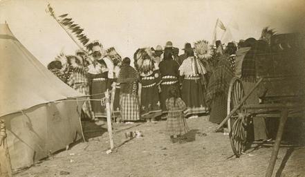 | Keywords: Back view of the Squaw dance Pine Ridge S.D. 08387v.jpg en Title Back view of the Squaw dance Pine Ridge S D / photo made by S D Butcher Son Kearney Neb Creator s S D Butcher Son photographer Related Names Butcher Solomon D Solomon Devore 1856-1927 Date Created/Published c1908 May 15th Medium 1 photographic print postcard gelatin silver Summary Photograph shows a rear view of a group of Sioux women standing some wearing headdresses also shows a wagon a tent and a young Sioux girl Reproduction Number LC-DIG-ppmsca-08387 digital file from original photo Rights Advisory No known restrictions on publication Call Number LOT 12749 item P P Repository Library of Congress Prints and Photographs Division Washington D C 20540 USA Notes H110627 U S Copyright Office Title from item Copyright 1908 by S D Butcher Son http //hdl loc gov/loc pnp/ppmsca 08387 2014-01-29 10 46 40 http //www loc gov/pictures/search/ q pine 20ridge creator John Grabill PD-USGov Uploaded with UploadWizard Pine Ridge Indian Reservation |