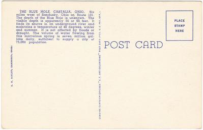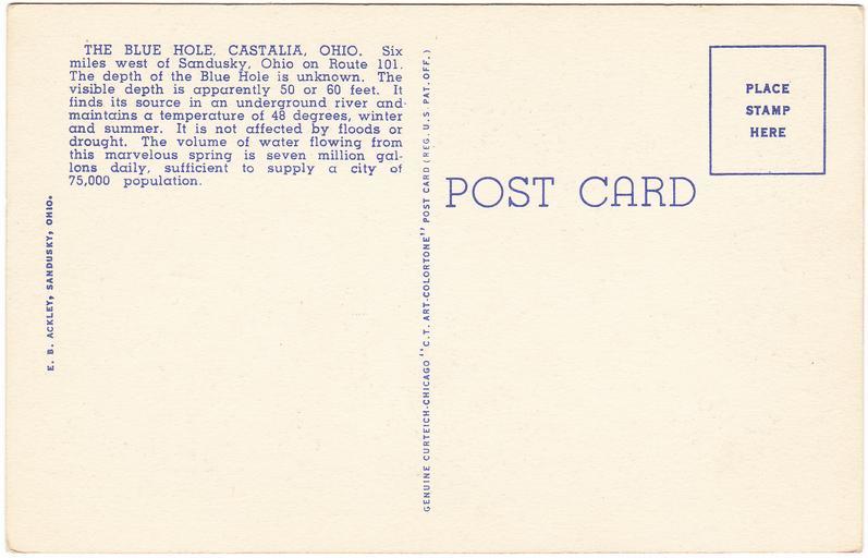 | Keywords: postcard postcards linen castalia castalia, ohio castaliaohio ohio blue hole bluehole the blue hole thebluehole c.t. art colortone ctartcolortone curteich curt teich co. curtteichco curteich-chicago curteichchicago unused unknown date unknowndate white border whiteborder white border era whiteborderera e.b. ackley ebackley date unknown dateunknown ohio history ohiohistory historic ohio historicohio text Description on front of card: Watching the Fish in the Trout Stream at the Blue Hole, Castalia, Ohio No. in Series: 25 Description on back of card: THE BLUE HOLE, CASTALIA, OHIO. Six miles west of Sandusky, Ohio, on Route 101. The depth of the Blue Hole is unknown. The visible depth is apparently 50 or 60 feet. It finds its source in an underground river and mountains a temperature of 48 degrees, winter and summer. It is not affected by floods or drought. The volume of water flowing from this marvelous spring is seven million gallons daily, sufficient to supply a city of 75,000 population. Published by: E.B. Ackley, Sandusky, Ohio | A genuine Curteich-Chicago "C.T. Art-Colortone" post card, a tradename under Curt Teich Co., Chicago, Illinois Unused. The Blue Hole is a freshwater pond and was a tourist site from the 1920s to 1990 and had 165,000 visitors annually. Wikipedia: en.wikipedia.org/wiki/Blue_Hole_(Castalia) Publisher Note: Curt Teich emigrated to Chicago in 1895. He had worked as a lithographer in Lobenstein, Germany. He founded the Curt Teich Company in 1898, concentrating on newspaper and magazine printing. He was an early publisher of postcards, but he didn't begin printing them himself until 1908. According to MetroPostcard.com, "As his competition dwindled, his sales expanded and his American factories would eventually turn out more postcards than any other in the United States. " The company was best known for their wide range of advertising and postcards of North America. By the 1920s, it was producing so many postcards with borders that they became recognized as a type dubbed "White Border Cards," creating an "era." Curt Teich started using offset presses in 1907, but it took a number of years before he had offset presses made to his satisfaction, and many more years for him to perfect the method. His innovations in this printing technique directly led to the production of what we now call "linens" by the early 1930s. The company aided the war effort during the second world war by also printing many military maps. Curt Teich eventually turned management of the company over to his son, but he remained active in company operations throughout its history. Curt Teich died in 1974 and the family business was sold to Regensteiner Publishers who continued to print postcards at the Chicago plant until 1978 when the rights to the company name and processes were sold to the Irish company, John Hinde Ltd. Their California subsidiary now prints postcards under the name John Hinde Curteich, Inc. Source: www.metropostcard.com/publisherst.html Description on front of card: Watching the Fish in the Trout Stream at the Blue Hole, Castalia, Ohio No. in Series: 25 Description on back of card: THE BLUE HOLE, CASTALIA, OHIO. Six miles west of Sandusky, Ohio, on Route 101. The depth of the Blue Hole is unknown. The visible depth is apparently 50 or 60 feet. It finds its source in an underground river and mountains a temperature of 48 degrees, winter and summer. It is not affected by floods or drought. The volume of water flowing from this marvelous spring is seven million gallons daily, sufficient to supply a city of 75,000 population. Published by: E.B. Ackley, Sandusky, Ohio | A genuine Curteich-Chicago "C.T. Art-Colortone" post card, a tradename under Curt Teich Co., Chicago, Illinois Unused. The Blue Hole is a freshwater pond and was a tourist site from the 1920s to 1990 and had 165,000 visitors annually. Wikipedia: en.wikipedia.org/wiki/Blue_Hole_(Castalia) Publisher Note: Curt Teich emigrated to Chicago in 1895. He had worked as a lithographer in Lobenstein, Germany. He founded the Curt Teich Company in 1898, concentrating on newspaper and magazine printing. He was an early publisher of postcards, but he didn't begin printing them himself until 1908. According to MetroPostcard.com, "As his competition dwindled, his sales expanded and his American factories would eventually turn out more postcards than any other in the United States. " The company was best known for their wide range of advertising and postcards of North America. By the 1920s, it was producing so many postcards with borders that they became recognized as a type dubbed "White Border Cards," creating an "era." Curt Teich started using offset presses in 1907, but it took a number of years before he had offset presses made to his satisfaction, and many more years for him to perfect the method. His innovations in this printing technique directly led to the production of what we now call "linens" by the early 1930s. The company aided the war effort during the second world war by also printing many military maps. Curt Teich eventually turned management of the company over to his son, but he remained active in company operations throughout its history. Curt Teich died in 1974 and the family business was sold to Regensteiner Publishers who continued to print postcards at the Chicago plant until 1978 when the rights to the company name and processes were sold to the Irish company, John Hinde Ltd. Their California subsidiary now prints postcards under the name John Hinde Curteich, Inc. Source: www.metropostcard.com/publisherst.html |