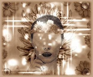 Keywords: background sepia woman fairy muse lighting effects card poster sauermaul