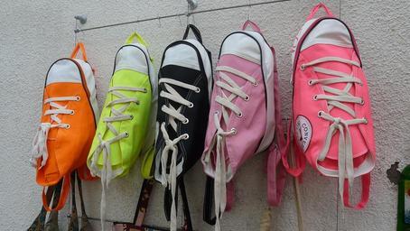 Keywords: backpack shoe suspended costs incurred by street vending colorful