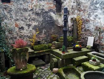 Keywords: backyard nooks and crannies old mossy moss pump gutters