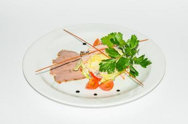 Keywords: bacon sausage appetizer tomatoes slicing vegetables delicious kitchen salad lunch cherry tomatoes colorful useful nutrition diet red taste food dinner dish the tomatoes on the branch use vegetarianism
