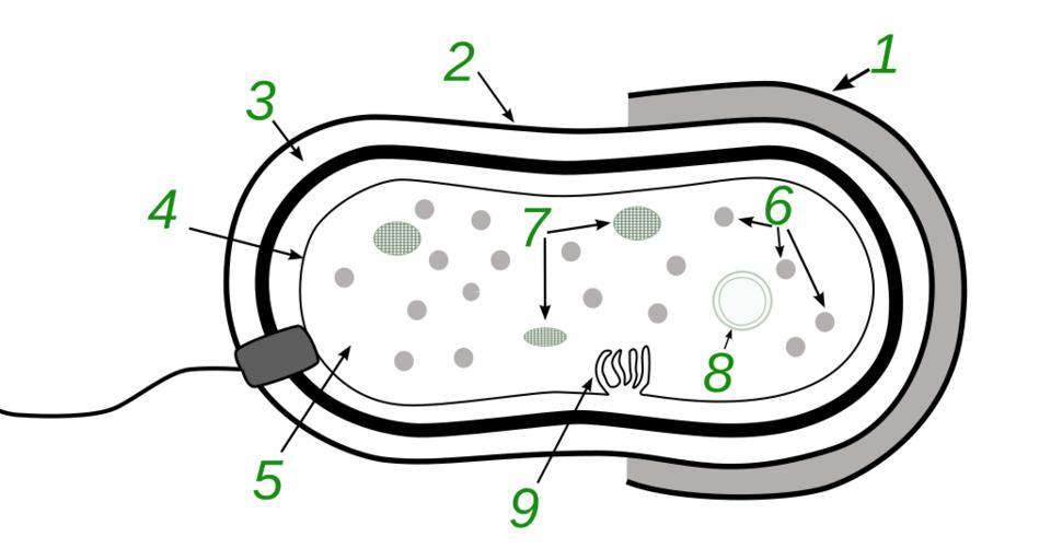 | Keywords: Bacteria.svg s translated from lithuanian Capsula Outer membrane Periplasm and Cell wall Cytoplasmic inner membrane Cytoplasm Ribosome Reserve food supplies Chromosome Mesosome not a real organelle artifact of EM fixation see en mesosome 2006-01-04 own assumed Knutux Bacteria diagrams |