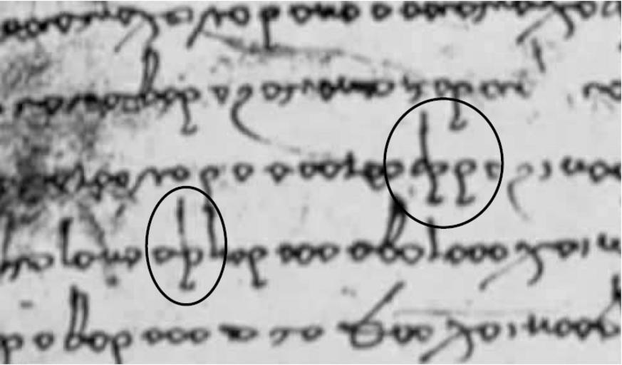 | Keywords: Bactrian doc with letter sho.png Bactrian document I 623001 showing Greek letters Phi Rho and Sho After N Sims-Williams A Bactrian deed of manumission Silk Road Art and Archaeology V 1997-8 1999 p 210 fig 4 PD-old Greek manuscripts Bactria Sho letter |