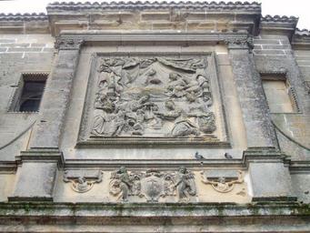 Keywords: Baeza - Catedral, exteriores 22.jpg en Cartela de la fachada de la Catedral de Baeza Jaén Andalucía España own Zarateman 2010-03-29 Church reliefs in Andalusia Baeza Cathedral cc-zero
