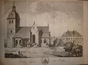 Keywords: Bagge8.JPG sv Tab 7 Örebro kyrka och Rådhus ur J F Bagges bok Beskrifning om upstaden Örebro own J F Bagge 1785 Johan Fredric Bagge Sankt Nicolai kyrka Örebro 1758 in Örebro
