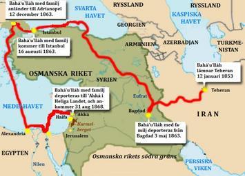 | Keywords: Bahá'u'lláh-karta.PNG en A map in Swedish language illustrating Bahá'u'lláhs deportations 1853 - 1869 sv En karta på svenska språket som föreställer Bahá'u'lláhs förvisningar och deportationer mellan 1853 och 1868 own Caspiax 2009-03-23 Bahá'í maps |