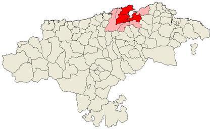 | Keywords: Bahía de Santander Cantabria.png En rojo oscuro los municipios considerados de la comarca de la Bahía en rojo claro a veces son considerados como tales Map of the comarca of Bahía de Santander Cantabria Spain Maps of municipalities of Cantabria 2005-12-01 own assumed Xuankar~commonswiki |