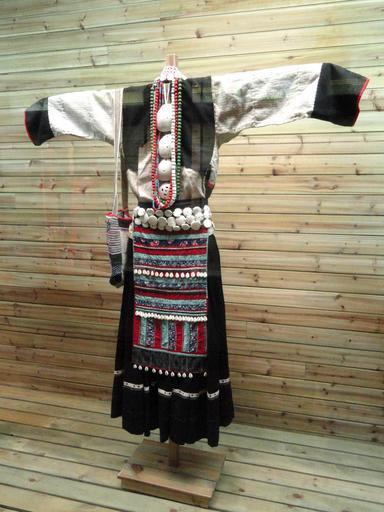 Keywords: Bai woman hemp, shell-ornamented clothes - Yunnan Nationalities Museum - DSC04339.JPG Bai woman hemp shell-ornamented clothes Clothing exhibited in the Yunnan Nationalities Museum Kunming Yunnan China I took this photograph 2011-08-13 02 36 00 Daderot Public domain Clothing in the Yunnan Nationalities Museum Bai clothing |