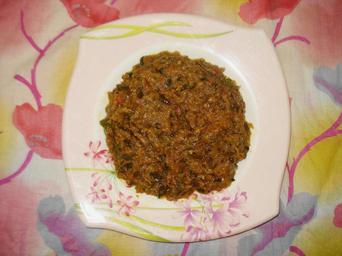 Keywords: Baingan Ka Bhurta.JPG en Mashed Brinjal own Miansari66 Cuisine of Punjab India made by User Miansari66 Cuisine of Pakistan Baingan bharta Cc-zero