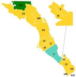 | Keywords: Baja California Sur distritos 2008.svg es Resultados de la elección de Diputados por partido político en el estado de Baja California Sur México en 2008 Own work<br /> Inkscape 2008-02-04 Battroid Maps of Baja California Sur SVG maps of Baja California Sur |