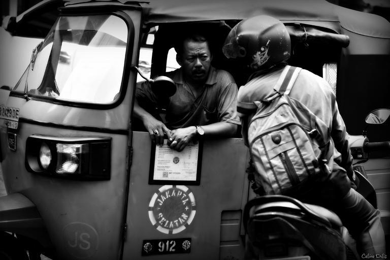 | Keywords: jakarta indonesia talking discussion moto motor motorcycle vehicule traffic noiretblanc white blackandwhite black men wheel street streets back light hands bag backpack windows window people monochrome black and white Bajaj vs moto Explore Céline DILIS' 100 photos on Flickr! |